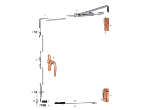 配件執(zhí)手、合頁可通過調(diào)節(jié)適用于左、右式門窗。